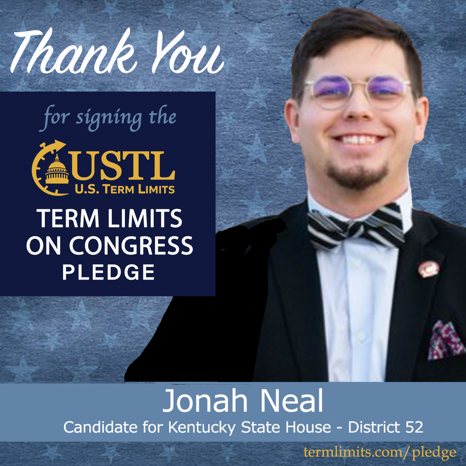 For immediate release April 14, 2026 Contact: Scott Tillman, U.S. Term LimitsPhone: (321) 345-7455stillman@termlimits.com Jonah Neal Pledges to Support Congressional Term Limits Monticello, KY – U.S. Term Limits (USTL),