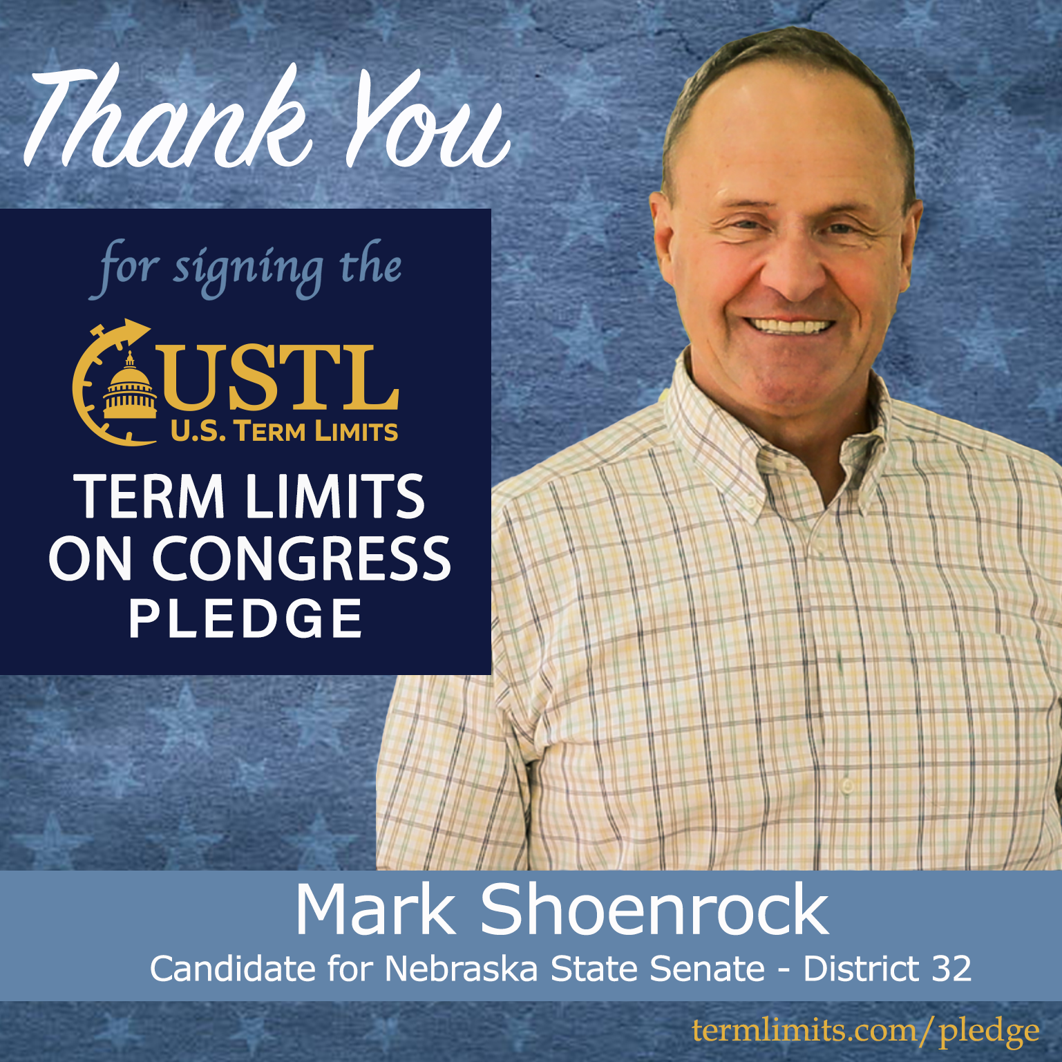 For immediate release April 8, 2026 Contact: Scott Tillman, U.S. Term LimitsPhone: (321) 345-7455stillman@termlimits.com Mark Schoenrock Pledges to Support Congressional Term Limits Hebron, NE – U.S. Term Limits (USTL),
